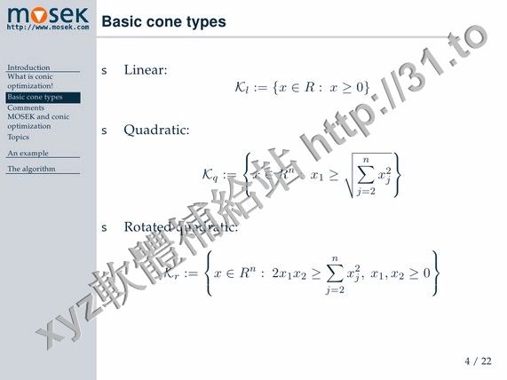 MOSEK可以解決的問題類型